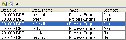 Oberhalb der Tabelle, befinden sich eine Reihe von Schaltknöpfen, sowie der Tabellentitel. Darunter folgt die eigentliche Tabelle, mit den Spaltenüberschriften und den einzelnen Tabellenzeilen.