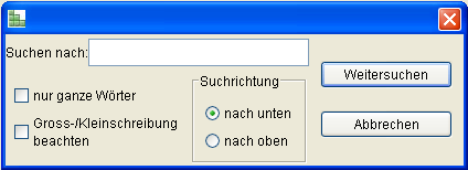 Die Suchrichtung, ausgehend von der aktuellen Position in der Tabelle, kann mittels der Schalter „nach oben“ bzw. „nach unten“ geändert werden.