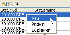 Um eine Zeile zu duplizieren, selektieren Sie die zu duplizierende Zeile und wählen Sie die Funktion „Duplizieren“ aus dem Kontextmenü einer Tabelle.
