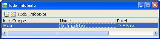 Über das Menü Paketdaten→ToDo-Definitionen→Infotexte wird die Übersicht der Infotexte geöffnet.