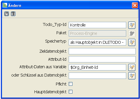 | Als Hauptobjekt in DLETODO | Der Schlüssel des in „Datenobjekt“ spezifizierten Datenobjektes, oder aus der angegebenen Variable wird in der Todo gespeichert. |