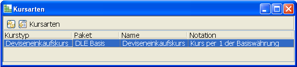 Über das Menü Stammdaten→Währungen→Kurstyp wird die Übersicht der Kurstypen geöffnet.