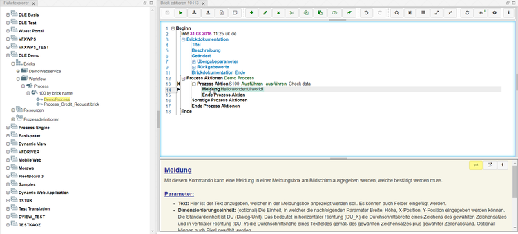 Am oberen Ende befindet sich ein neues Menü, welches dabei hilft, durch die DLE 2.0 zu navigieren. Dieses Menü wird im folgenden Kapitel näher erklärt. Des weiteren können hier Informationen über den neuen Brick-Editor gefunden werden.