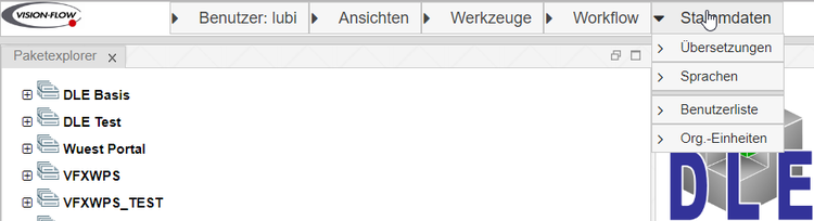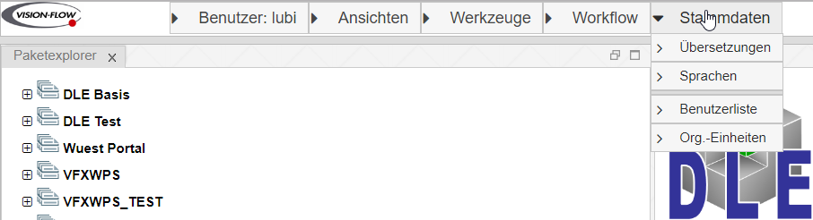 Stammdaten sind für die gesamte DLE geltende Basisdaten, die nicht Paketabhängig sind. Dazu zählen beispielsweise die Organisationseinheiten und Benutzer.