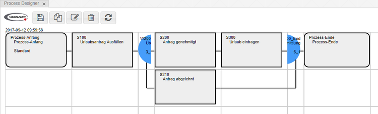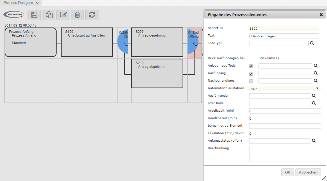 Im Designer kann ein Workflow definiert werden. Die Logik des Prozesses wird über Weichen geregelt. Dabei kann jeder Schritt Todos erstellen und Bricks ausführen. Aus einem Prozess kann damit direkt eine fertige Applikation gebaut werden.