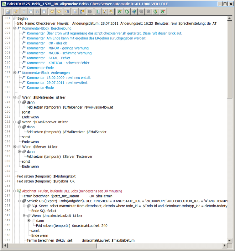 Diese Shell startet über einen Remote-Aufruf auf dem Server den Brick Checkserver.sh in dem Ordner DLE:GeneralBricks.