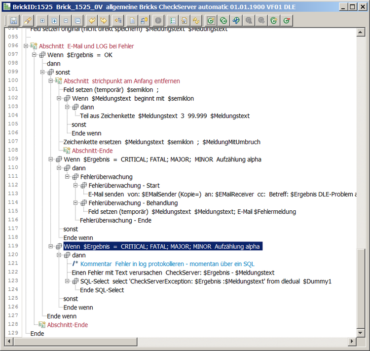 Diese Einstellungen sind in einem Brick CheckServer verankert und können natürlich auf die Bedürfnisse angepasst werden. Im Fehlerfall wird ein E-Mail versendet.