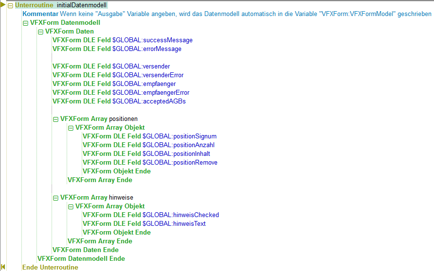 Das VFXForm Datenmodell ist ein sehr wichtiges Kommando für VFXForm. In diesem wird das initiale Datenmodell definiert.