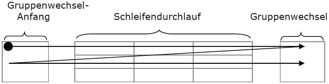 Dieses Kommando erzwingt einen Gruppenwechsel. Das heißt, es springt sofort in den Abschnitt „Gruppenwechsel“ und beendet somit die aktuelle Gruppe. Im Gruppenwechsel-Abschnitt sind die Werte für das letzte Element aktuell.